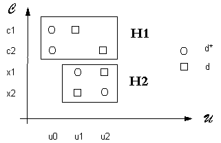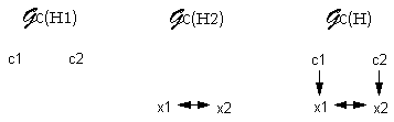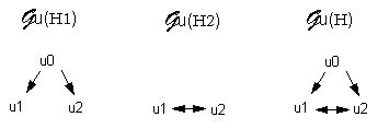 Premières définitionsSi H1 est l'hypertexte (U1, C1, d1, d1*) et H2 est (U2, C2, d2, d2*), H1 On notera qu'il peut y avoir égalité des ensembles sans identité sur les hypertextes, ni même inclusion (si les relations sont incompatibles). Si H1 et H2 et sont deux hypertextes faisant partie d'un domaine, on définira de manière évidente l'intersection et la réunion de ces hypertextes (par l'intersection et la réunion des ensembles de base et des ensembles liés aux relations). Si H1 et H2 dans un domaine commun sont tels que : D1 on note leur réunion par H = H1 Deux cas particuliers peuvent intervenir dans la construction d'un