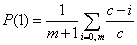 Valeur de alphaPar le fait que les liens sont univalués, on peut calculer Pour effectuer ce calcul, décompte les liens en série par le nombre de descripteurs de l'Ui cible. En appelant P(i) la probabilité d'avoir des concepts différents (de 0 à k) de i concepts donnés (variant de 0 à m) on a: 0 descripteur Ce cas se présente avec la probabilité 1/(k+1). La probabilité de trouver une source avec référents différents est 1 : 1 descripteur Ce cas se présente avec la probabilité 1/(k+1), il y a k cas possibles, chacun avec la probabilité 1/k. La probabilité de trouver une source avec des référents différents vaut probabilité de prendre de 0 à m concepts parmi c, différents de celui du descripteur : 2 descripteurs Ce cas se présente avec la probabilité 1/(k+1), il y