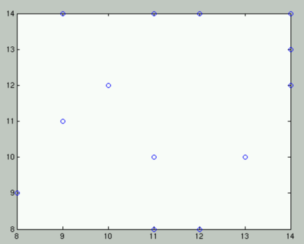 où DX représente un manque en référents (la valeur 14 indique un puit) et DY un manque en descripteur (la valeur 14 indique une source). Utilisation du laplacien combinatoireLa commande l=lap(r)calcule le laplacien combinatoire de r dont la version pleine (l1=full(l)) est: 1,-1, 0, 0, 0, 0, 0, 0, 0, 0, 0, 0, 0, 0, 0 -1, 3, 0,-1, 0, 0,-1, 0, 0, 0, 0, 0, 0, 0, 0 0, 0, 1, 0, 0, 0, 0, 0, 0, 0, 0, 0, 0, 0,-1 0,-1, 0, 4,-1,-1,-1, 0, 0, 0, 0, 0, 0, 0, 0 0, 0, 0,-1, 8,-1,-1,-1, 0,-1, 0,-1,-1, 0,-1 0, 0, 0,-1,-1, 6,-1, 0, 0,-1, 0,-1,-1, 0, 0 0,-1, 0,-1,-1,-1, 9, 0, 0,-1, 0,-1,-1,-1,-1 0, 0, 0, 0,-1, 0, 0, 1, 0, 0, 0, 0, 0, 0, 0 0, 0, 0, 0, 0, 0, 0, 0, 0, 0, 0, 0, 0, 0, 0 0, 0, 0, 0,-1,-1,-1, 0, 0, 5, 0, 0,-1,-1, 0 0, 0, 0, 0, 0, 0, 0, 0, 0, 0, 1, 0,-1, 0, 0 0, 0, 0, 0,-1,-1,-1, 0, 0, 0, 0, 5, 0,-1,-1 0, 0, 0, 0,-1,-1,-1, 0, 0,-1,-1, 0, 7,-1,-1 0, 0, 0, 0, 0, 0,-1, 0, 0,-1, 0,-1,-1, 5,-1 0, 0,-1, 0,-1, 0,-1, 0, 0, 0, 0,-1,-1,-1, 6 Les valeurs propres de l1 sont: 0 ; 0 ; 0.57 ; 0.83 etc. Il y a donc deux composantes connexes comme déjà observé (l'unité isolée 9 et le reste). Le vecteur propre correspondant à la valeur propre 0.57 est: 1 0.82082 2 0.35583 3 -0.25851 4 0.062867 5 -0.07151 6 -0.050681 7 -0.017781 8 -0.16496 9 0 10 -0.073295 11 -0.22962 12 -0.076119 13 -0.099539 14 -0.08544 15 -0.11206 Il nous indique que outre 9 isolé, les unitiés C1 = {1, 2, 4} (coefficients positifs) forment un paquet relativement peu connecté au reste C2 = {3, 5, 6, 7, 8, 10, 11, 12, 13, 14, 15}. C'est une approximation qui minimise: cut(C1,C2) * (1/#C1 + 1/#C2) Approche alternativeLa théorie (Kleinberg, 1997) indique que les "hubs" correspondent aux unités d'information liées aux composantes maximales du vecteur propre associé à la valeur propre maximum de la matrice d'adjacence multipliée par sa transposée. Pour les "autorités", il faut prendre le produit de la transposée par la matrice d'adjacence. Dans notre cas r'* r et r * r' ont pour valeur propre maximum 14.6. Les vecteurs propres correspondants sont v1 et v2: