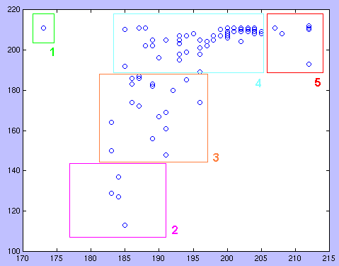 Cet algorithme est efficace mais il n'est pas symétrique dans le sens où il privilégie les premières composantes formées. Il pourrait être amélioré en choisissant pour chaque unité d'information la composante la plus proche ou en réitérant le procédé. Cela revient à utiliser des algorithmes d'analyse cluster classique (3). Avec UTOPIA, cet algorithme (avec coupure à 0.3 qui se révèle une valeur "intéressante" laissant peu d'unités isolées tout en gardant plusieurs composantes) fabrique 28 composantes constituées de 2 unités d'information ou plus. 10 unités sont considérées comme isolées: le champ 210, 2 notes et 7 citations. Les 28 composantes sont les suivantes (entre parenthèses le nombre d'unités dans chaque composante):